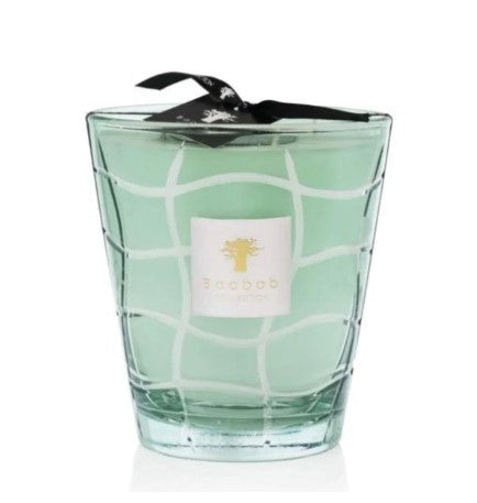 This candle, in a subtle, pale lime green, is a decorative object with a scent of peppermint, citrus leaves and tonka bean. Nazaré is a small Portuguese city set among the enormous coastal waves, known to surfers around the world